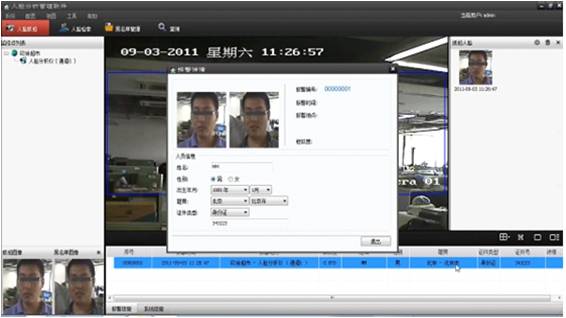 系統(tǒng)可以配置黑名單數(shù)據(jù)庫。人臉比對識別主要是對抓拍到的人臉與黑名單數(shù)據(jù)庫中的人臉照片進行實時比對,如果人臉的相識度達(dá)到閥值(可人工設(shè)置),系統(tǒng)自動可通過聲音等方式進行預(yù)警,提醒監(jiān)控管理人員。監(jiān)控管理人員可以根據(jù)雙擊報警信息查看抓拍原圖和錄像進行核實。